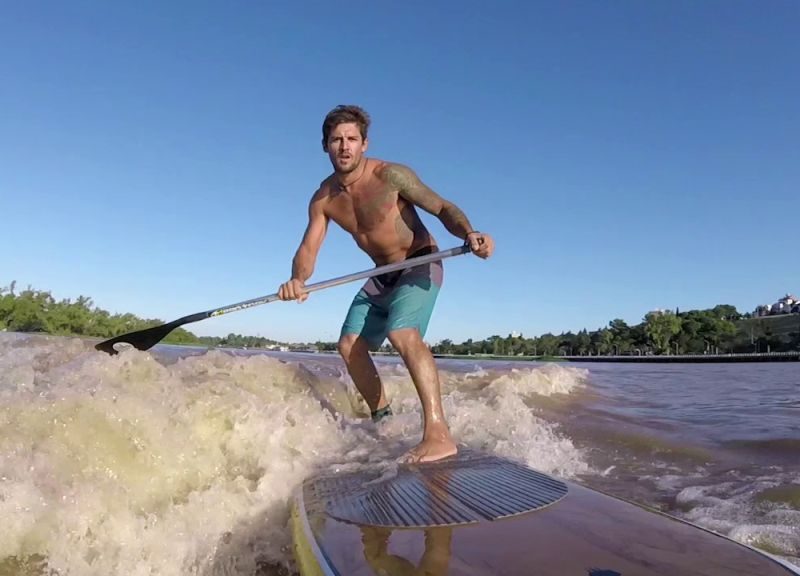 Francisco Giusti y Juliette Duhaime festejan en Patagonia Sup Race Llao LLao 14k