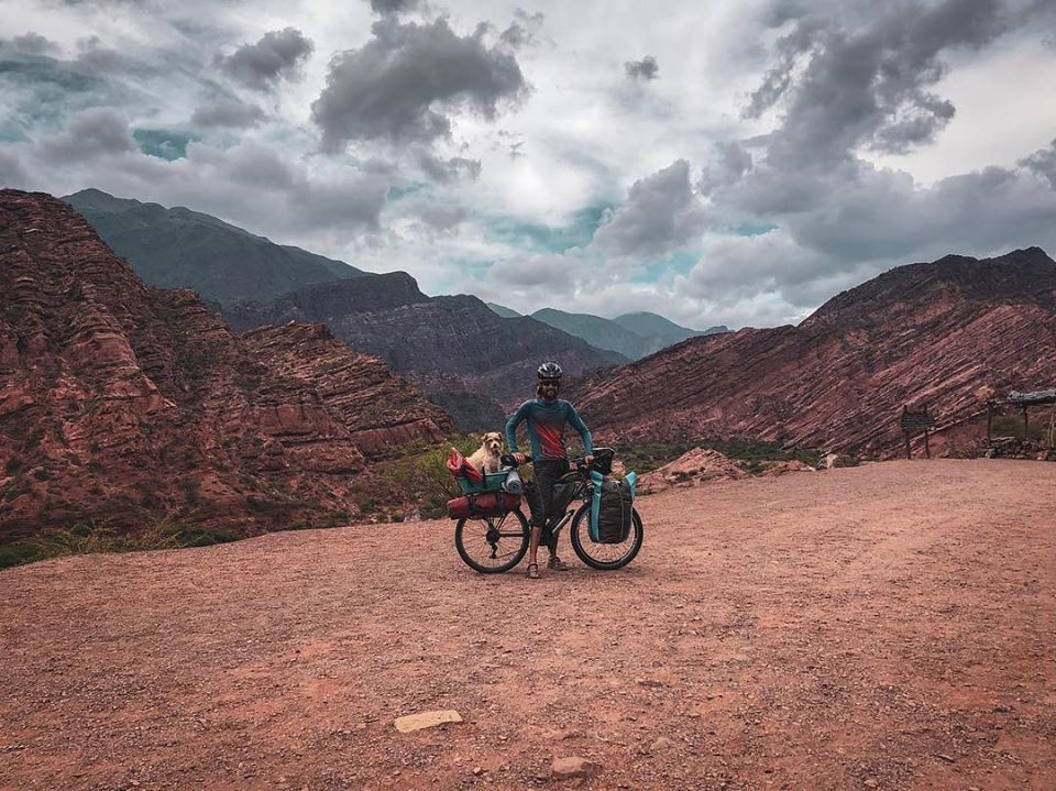 Dentro de la carrera Unión 7 Lagos, Ezequiel Gignone contó sobre su “locura” de recorrer el mundo con su bicicleta y en compañía de Manchita, su perro.