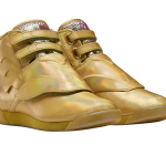 El primer calzado de la colección, Freestyle (Gold), es un guiño a la nueva armadura reluciente de Wonder Woman, presentado en cuero dorado, suela de goma translúcida y cordones relucientes recubiertos por una solapa protectora.