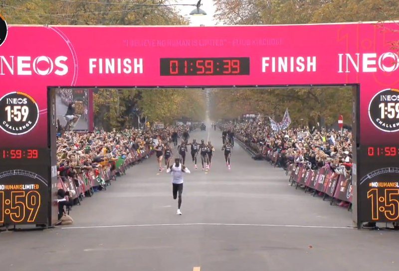 ¡Kipchoge corrió 42k en 1.59.40!